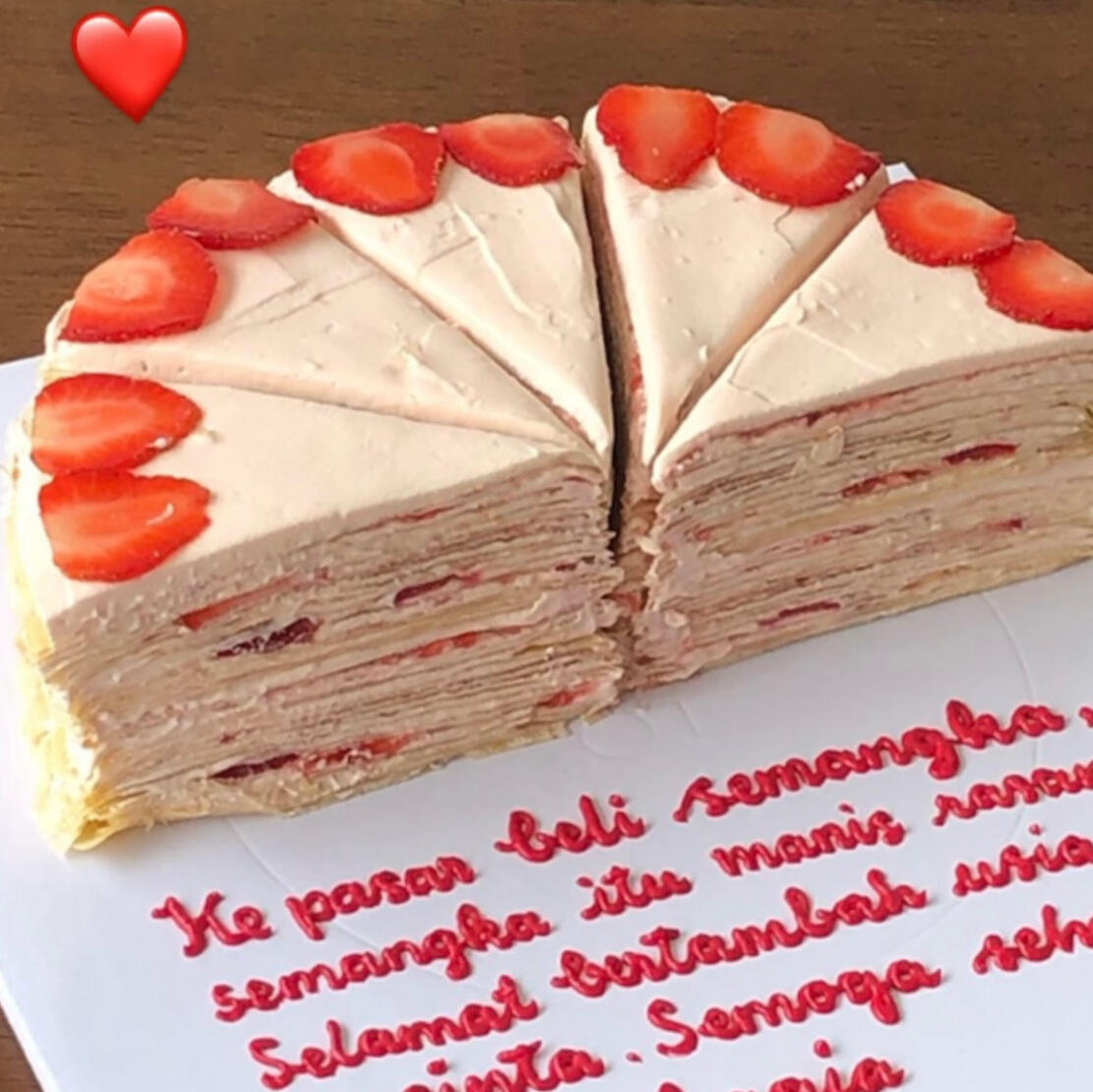 available in d16 cm/ 3 layers (h9 cm)3 layers of sponge cake, milk soak, fresh cream, strawberry compote, fresh strawberries.