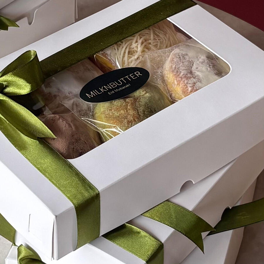 | box of 6. | gula halus (1); susu og (1); susu matcha (1); susu chocolate (1); keju brewok (1); coklat messes (1) |