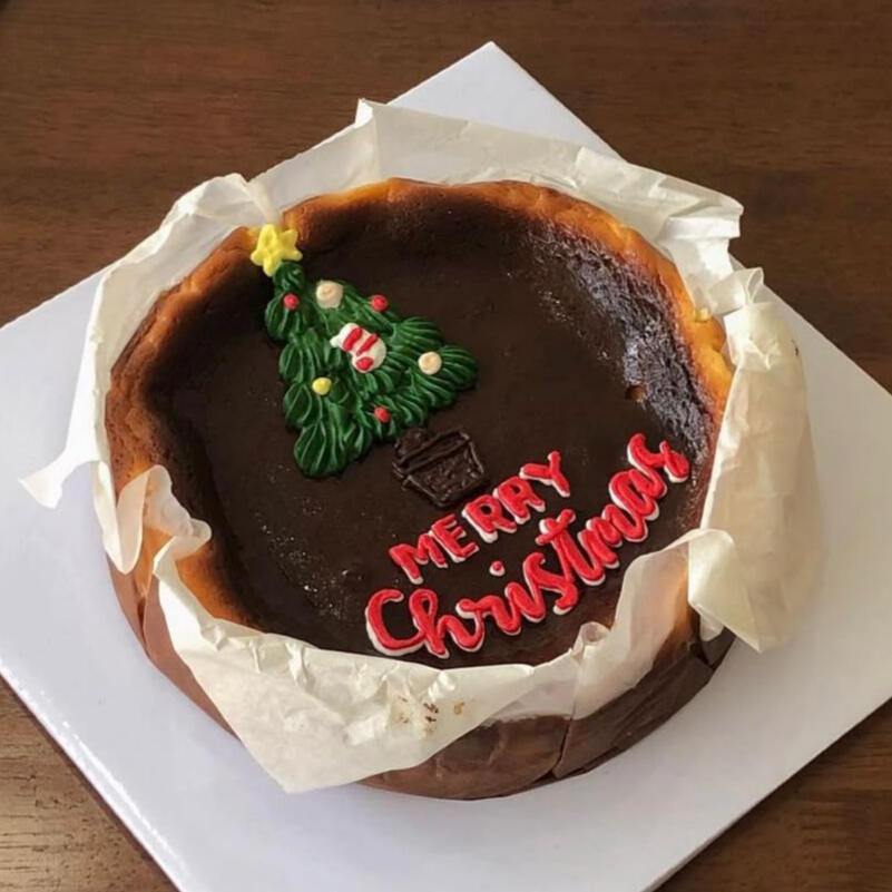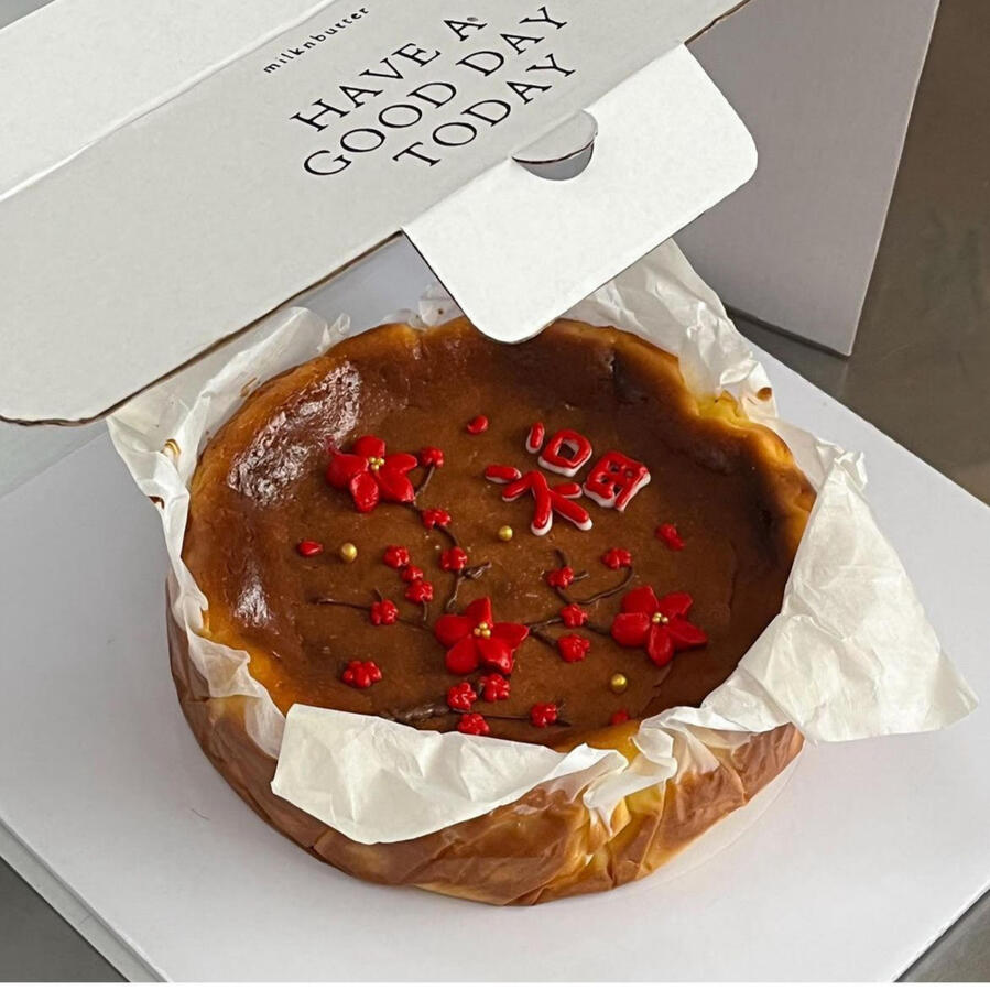 extra charge +10.000 for whole burnt cheesecake Chinese New Year design and ribbons!