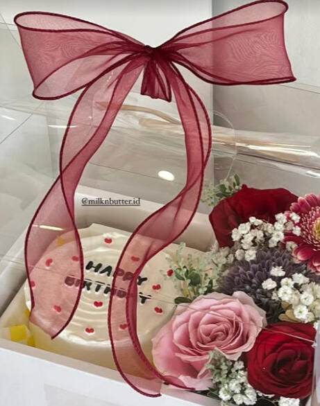 LOVE-TO-GO/ 260. per set"LOVE TO GO" terbagi jadi 2 part, sisi yang diisi rangkaian bunga dari season florist dan bento cake dari milknbutter. both rangkaian bunga dan bento cake bisa di custom, dari color pallete, hingga tulisan di cake!prices includes:rangkaian bunga (customizeable color and flower options), bento cake (customizeable), greeting cards, hologram & mica packaging