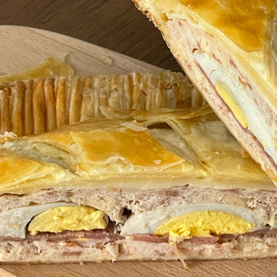PICNIC ROLL/ 110.perfect for your small gatherings- seasoned grounded chicken meat with smoked beef and eggs. wrapped in flaky and crispy puff pastries.size: