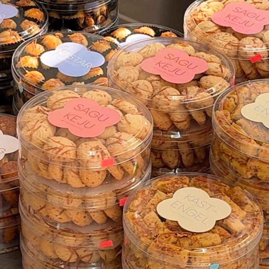 COOKIES LISTNastar Wijsman/ 60.Nastar Wijsman kami dibuat dari 50% butter dan 50% Wijsman sehingga memiliki tekstur yang crumbly dan lumer di mulut. diisi penuh dengan filling Nanas homemade yang kaya akan rempah-rempah <3Kastengel/ 55.Kastengel kita dibuat dengan 100% butter dan cheddar cheese (no Edam -personal preference). memiliki cita rasa yang cenderung gurih-asin dengan tekstur yang mudah hancur di mulutSagu Keju/ 55. (NEW)Kue Kering Gluten-free satu-satunya di menu tahun ini! 10000000% rapuh dan hancur di mulut -baik untuk penderita penyakit Maag ceunah:-)might be our new favorite!Putri Salju/ 55.peanut-based butter cookies! seperti cookies jadoel Putri Salju pada umumnya; tapi kita menggunakan campuran Mede dan Kacang tanah sehingga rasanya makin gurih -balanced dengan rasa manis dari taburan gula halus dan susu <3our favorite, sebelum Sagu Keju menyerang :-(Cocoa Drops/ 65 (NEW)100% butter cookies-based! dibalur dengan keju parut dan chocolate Nutella di tengah.fun fact: nagih bangetttt!?!?!?Choco Stick/ 65 (NEW)Chocolate and Kastengel boom-shaka-laka jadi satu. a very well balanced cookies flavor wise. kita pakai Couverture Chocolate jadi kalau kalian makan setoples juga ga bikin tenggorokan gatal :-)skibidi ini enak tapi lowkey pricey (salahin chocolate couverture aku tapi emang seenak ituuuuuuuuuuuuuuuuu <3)